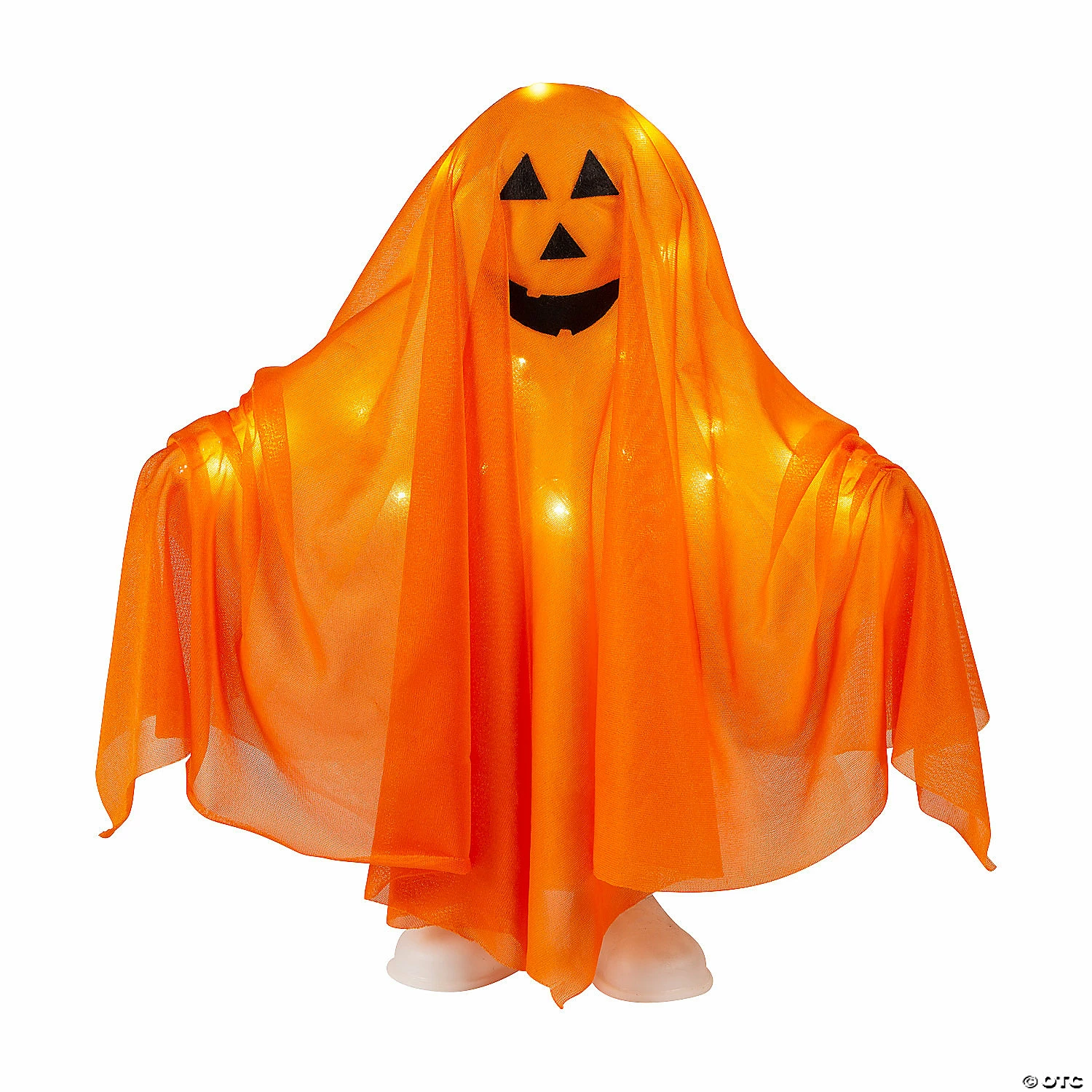 Just when you thought Halloween couldnβt get any cuter, along comes this adorable pumpkin ghost! Featuring a jack-o-lantern smile and fun lights, this stand-up Halloween decoration looks like heβs going in for a Halloween hug. Add this cute little ghost to Halloween party decorations or put it in the window for trick-or-treaters to see. Polyester. 15″ Featuries on/off switch. Requires 3 “AA” batteries, not included.