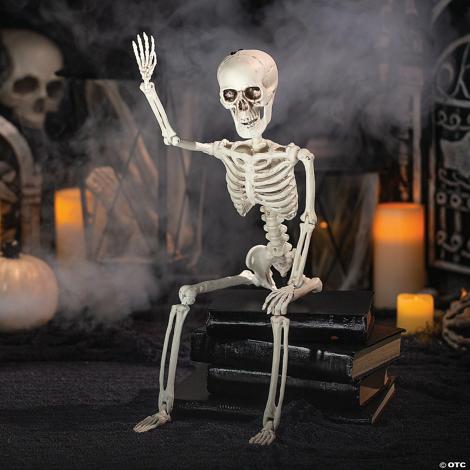Add some spooky fun to your Halloween decorations with this posable skeleton! Create the perfect Halloween display for your front porch, a Halloween party, or trick-or-treat event by posing this skeleton in different ways. You can make it look spooky for a haunted house effect or pose it silly for a kid-friendly party or trick-or-treat event. Plastic. 24″