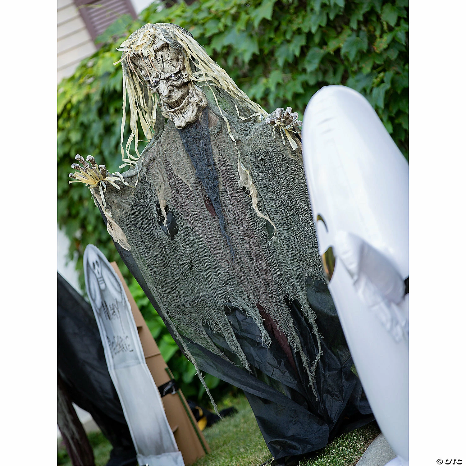 The woods is no place to be wandering alone at night, especially if you run into something wicked like this! A scary great addition to animated Halloween dΓ©cor, the decrepit wrinkly face of this large tree draws in victims by speaking bewitching phrases such as, “There is something spooky out tonight and I think itβs you…hahaha,” “Have you come for a treat or for a trick? Hahaha…” and “Ah, yet another creature of the night approaches. Hahaha…” For more animatronic props perfect for your haunted house, take root right here and shop our full spooky selection on this site! Polyester and foam character on plastic stand. 66″ Sound activated. Requires 3 “AAA” batteries, not included.