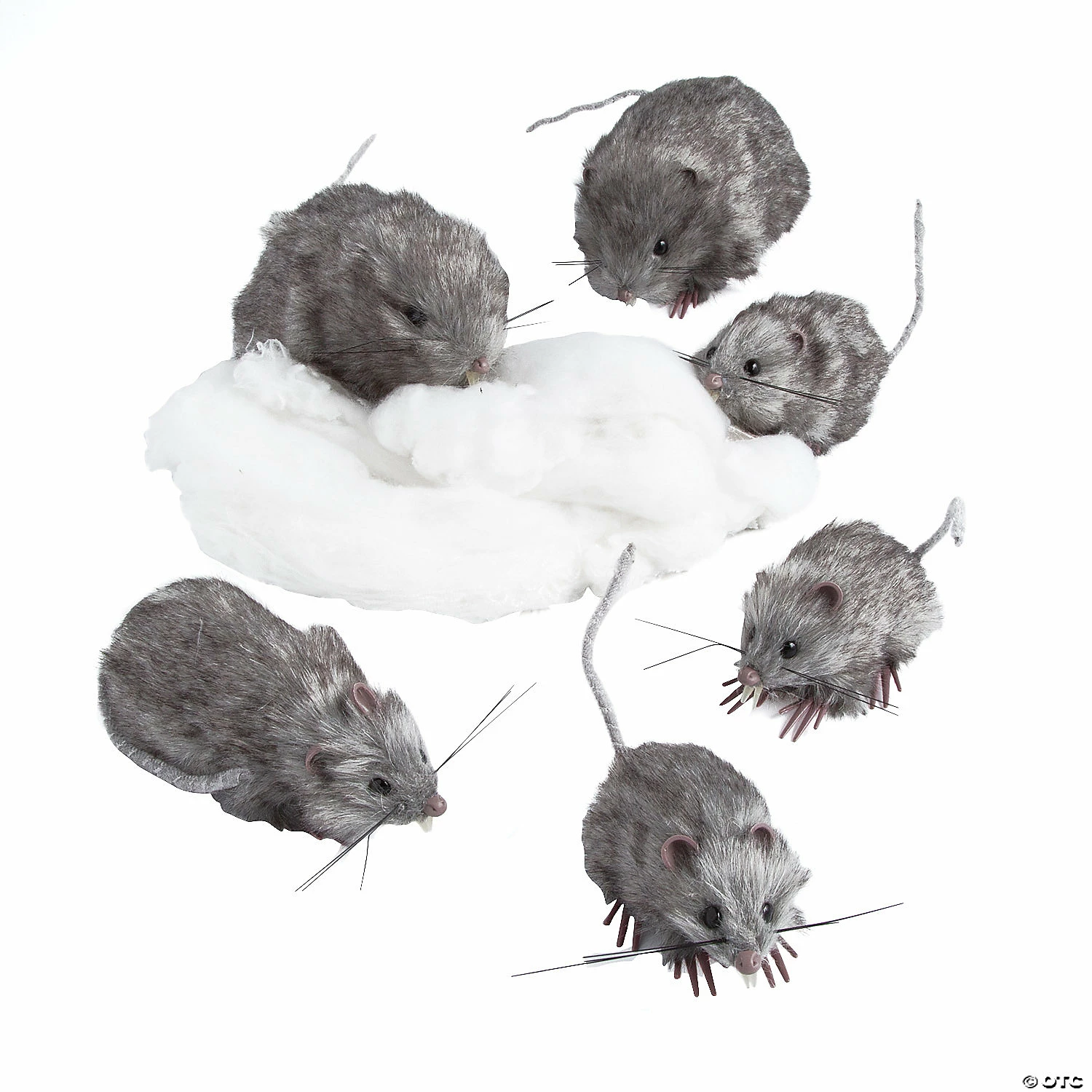 Your haunted house scene will be complete with an invasion of these rats that will make people scream! These creepy little rodent props are a must-have addition to Halloween dΓ©cor. They would look great placed on a side table or mantel with other Halloween tabletop decorations. You can also drape some Halloween mesh over a chair or sofa and arrange the included βstuffingβ into pieces to make it look like theyβre tearing up your living room furniture! Includes polyester stuffing. Plush. (6 pcs. per set) Large, 8″; medium, 6″; small, 4 1/2″.