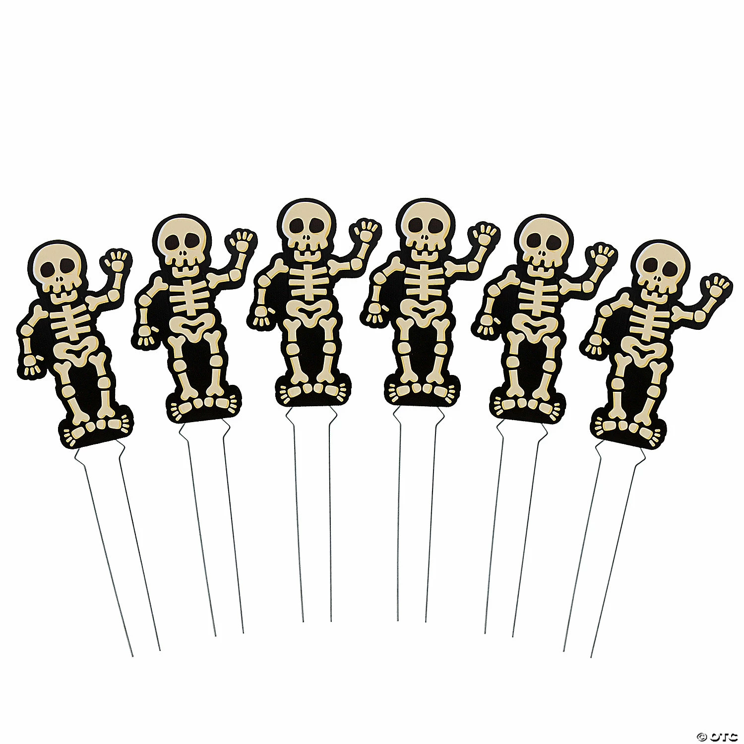 Greet visitors during the Halloween season with these cute skeleton sidewalk signs. Featuring metal stakes that make it easy to place the skeletons in a yard, these signs have smiling skeletons that appear to be mid-wave. Place the skeletons in a line or cluster them together for a bony welcoming committee. Corrugated plastic. (6 pcs. per unit) 8 1/2″ x 12 3/4″ Includes metal stakes. Single-sided. Simple assembly required. Β© OTC