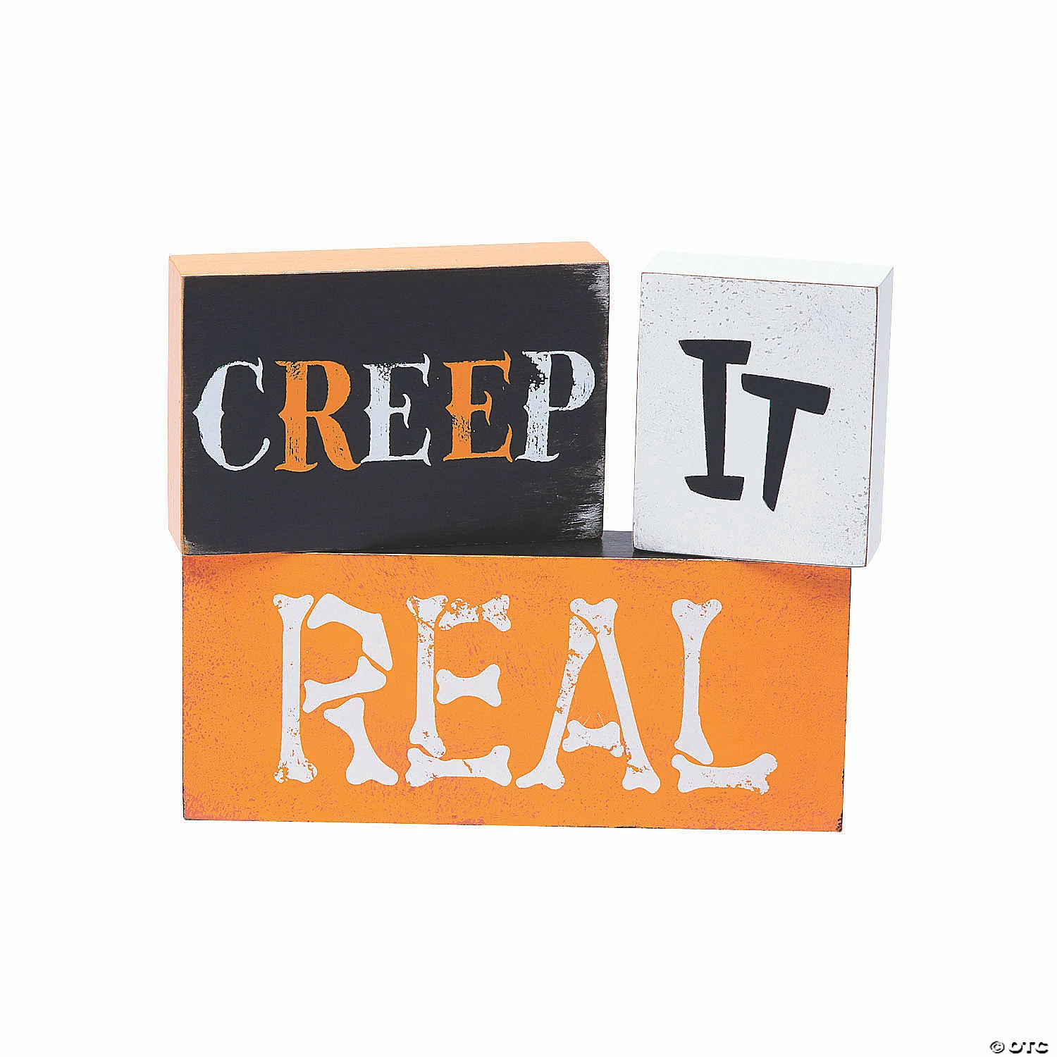 Double-sided for twice the fun, these Halloween blocks make a spooky statement on your mantel, entryway table or countertop. The assembled decoration reads, βTrick or Treatβ on one side and, βCreep it Realβ on the other. Use this piece of dΓ©cor for your Halloween party, or display it in your home for the entire fall season! Wood. (3 pcs. per unit) 2 1/2″ – 7″ x 3″ Β© OTC