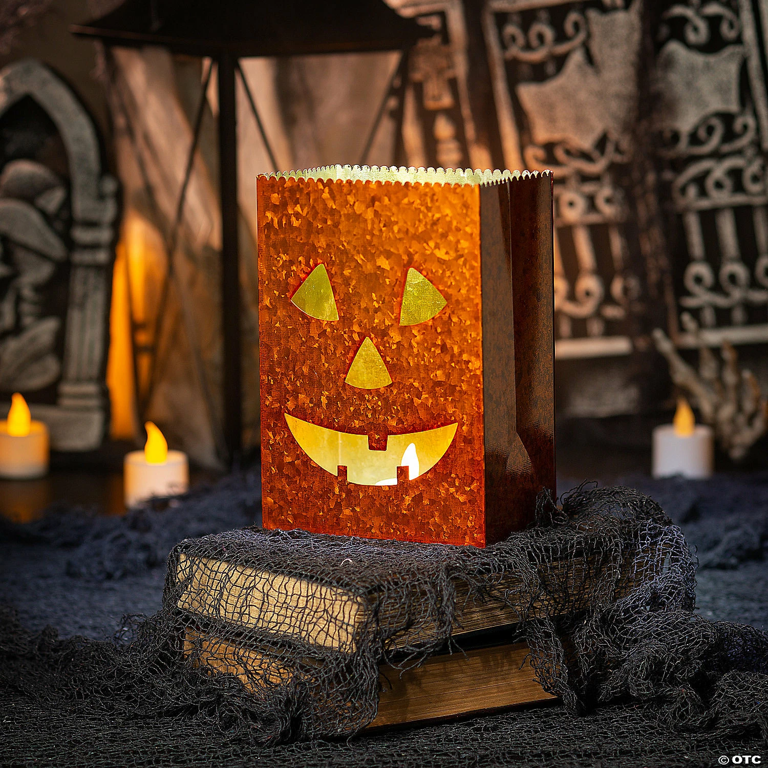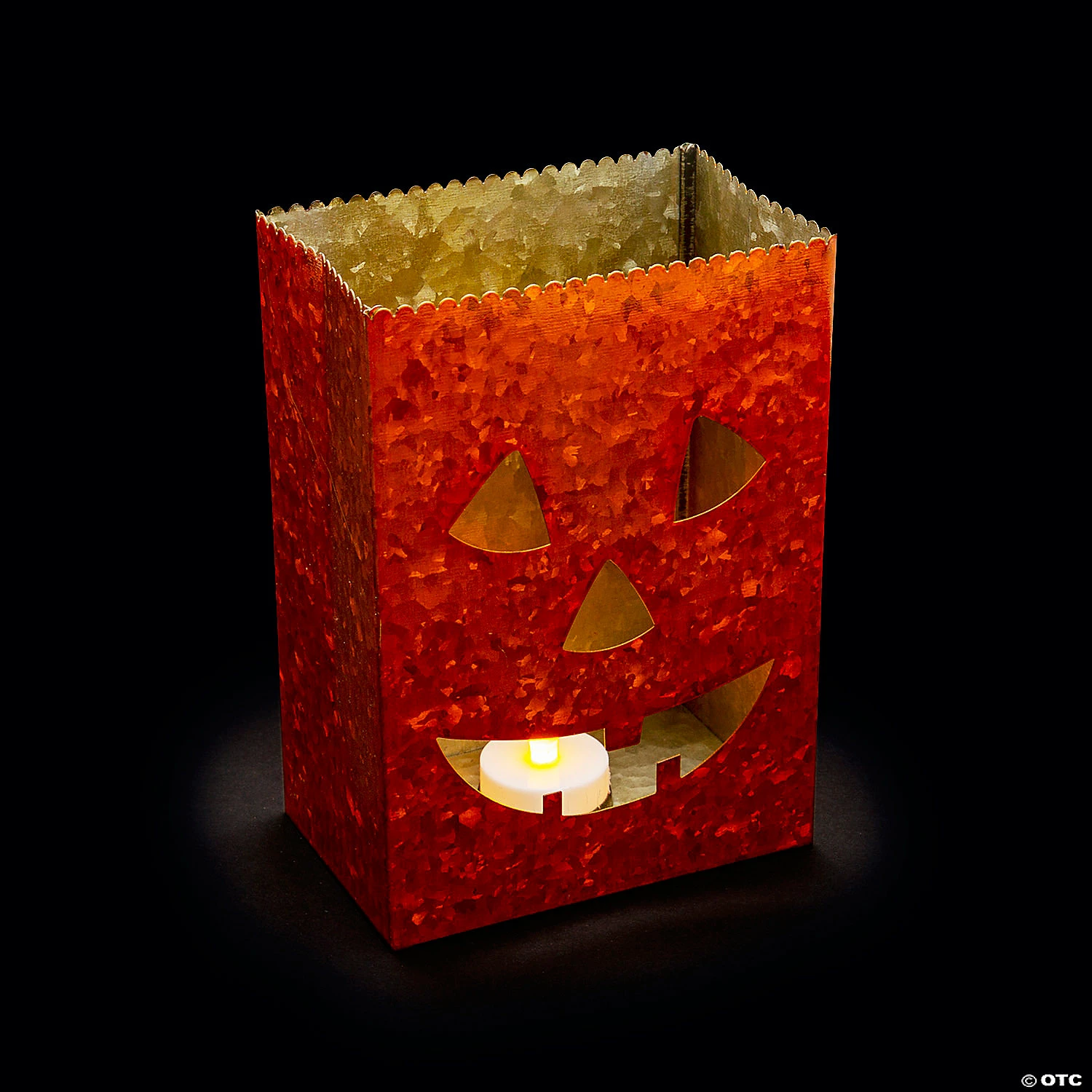 Lighten up your Halloween decorations with these charming luminaries! These three metal luminaries feature smiling pumpkin faces and are the perfect addition to home dΓ©cor for Halloween, or as party decorations for a Halloween party. Add your own battery-operated tea light (sold separately) to light up this jack-o’-lanternβs smile. Metal. (3 pcs. per set) 7″