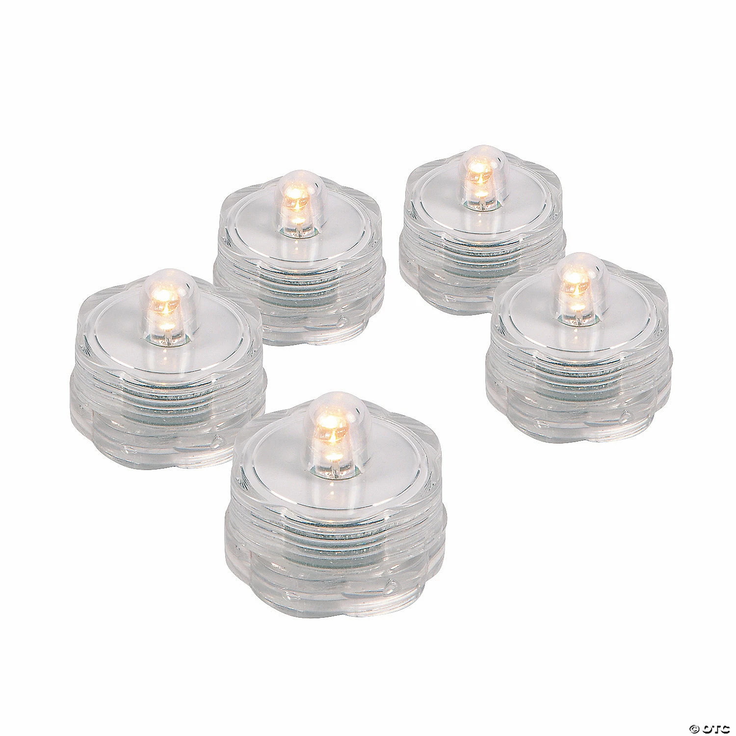Use these underwater LED lights to create unique centerpieces for any event. Submersible tea lights are ideal for DIY wedding decorations, prom dΓ©cor and more – combine them with succulents, add them to bowls or vases of water for an elegant glowing effect sure to spruce up your theme. Plastic. 1″ Requires 1 button cell battery, included.